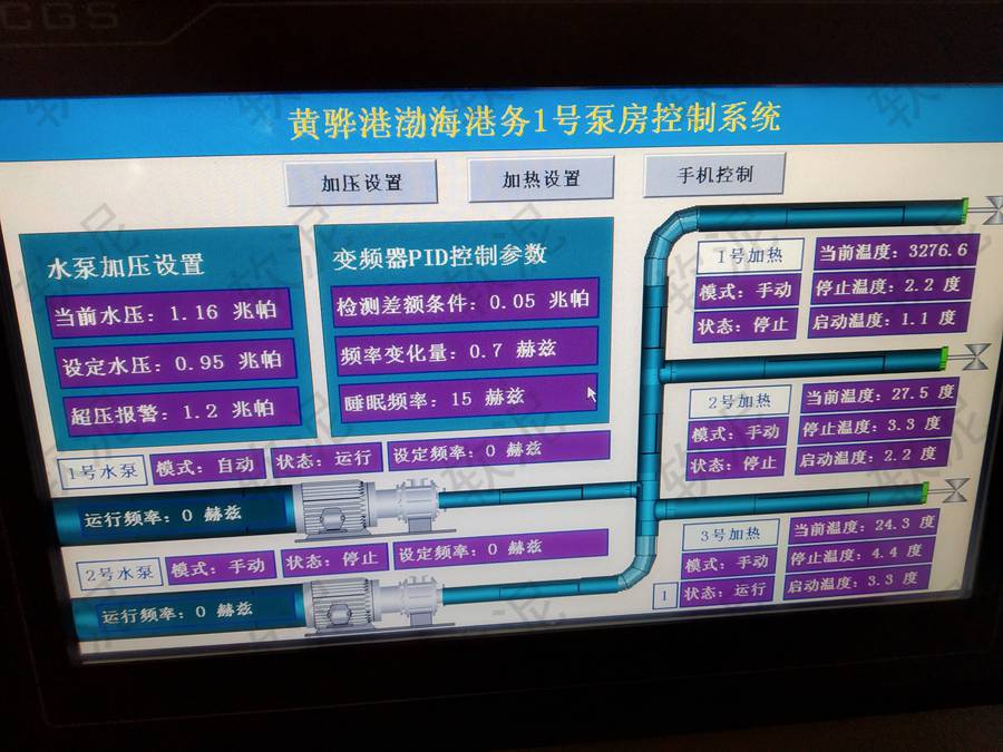 | 項(xiàng)目位于河北省滄州市黃驊港口。由原來的灑水車除塵方式改為了固定管道供水,高壓高空噴淋設(shè)備自動(dòng)噴灑的方式,實(shí)現(xiàn)作業(yè)期間自動(dòng)除塵功能。變頻器根據(jù)水壓傳感器反饋情況來決定水泵運(yùn)轉(zhuǎn)頻率,維持運(yùn)行期間的管道壓力在預(yù)設(shè)的范圍內(nèi)。使用軟泥智能控制主機(jī)的4G聯(lián)網(wǎng)控制功能,管理人員通過手機(jī)即可遠(yuǎn)程查看設(shè)備運(yùn)行狀態(tài),遠(yuǎn)程開關(guān)機(jī)和設(shè)置目標(biāo)水壓。 |