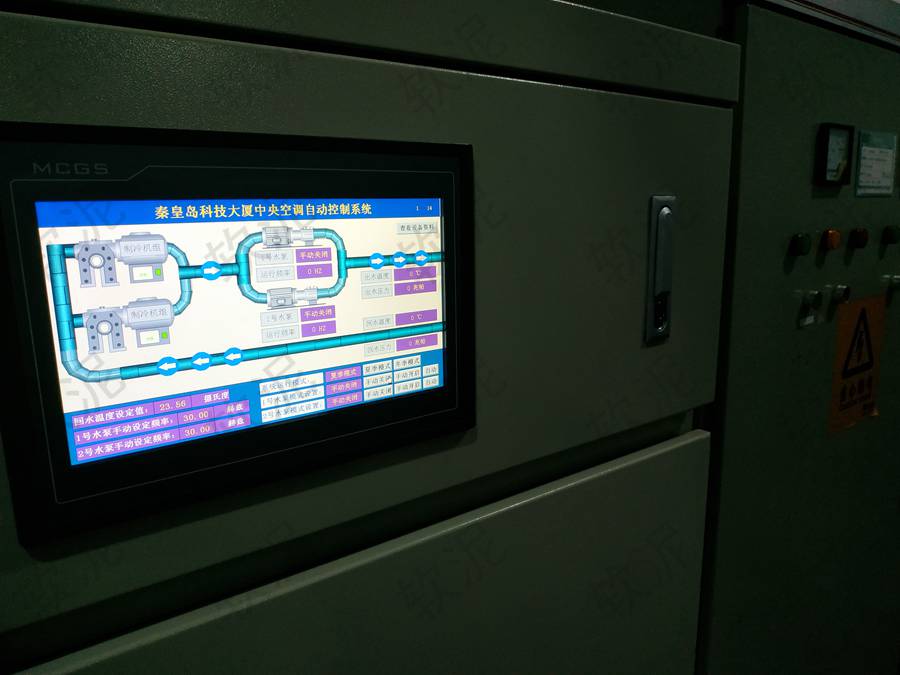 | 項(xiàng)目位于秦皇島市海港區(qū)龍海道69號(hào)科技大廈。原有的中央空調(diào)循環(huán)水泵只有工頻啟動(dòng)停止。我們?cè)黾恿俗冾l器和傳感器,根據(jù)供水溫度壓力和回水溫度壓力反饋,自動(dòng)調(diào)整水泵運(yùn)行頻率,實(shí)現(xiàn)節(jié)能運(yùn)行。使用軟泥智能控制主機(jī)的4G聯(lián)網(wǎng)控制功能,物業(yè)人員通過(guò)手機(jī)即可遠(yuǎn)程查看設(shè)備運(yùn)行狀態(tài),遠(yuǎn)程開(kāi)關(guān)機(jī)。 |